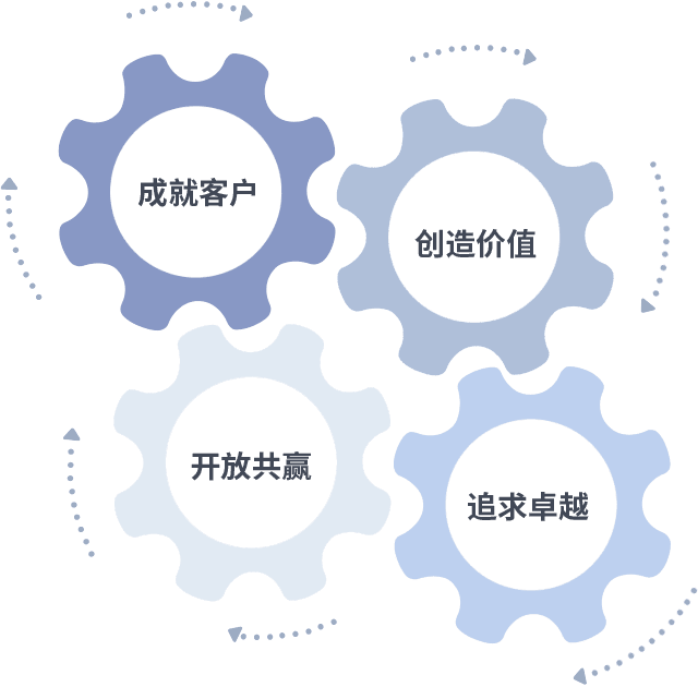 成就客户是一切决策的出发点,,,,创造价值是衡量所有工作的标准,,,追求卓越是威斯尼斯wns888做事做人的态度,,,,开放共赢是威斯尼斯wns888的格局也是最终的结果。。。。价值观的齿轮环环相扣,,推动着组织里的每个人不断向前。。